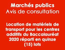 Avis de consultation ouverte : Location de matériels de transport pour les centres additifs du Baccalauréat 2020 réparti en quinze (15) lots